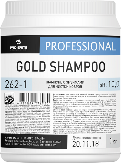 Шампунь для чистки ковров с энзимами PRO-BRITE GOLD SHAMPOO 1кг