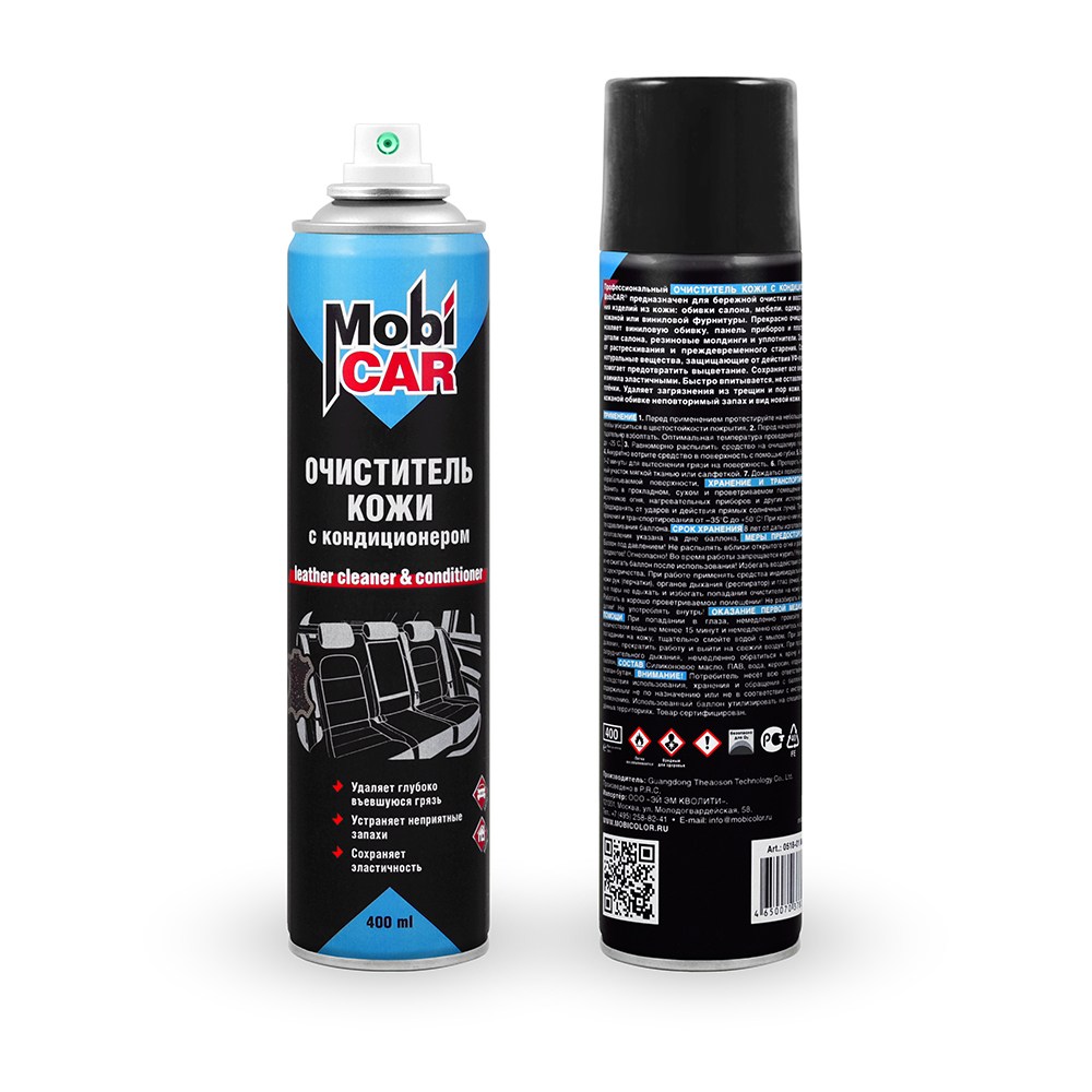 Профессиональный очиститель кожи с кондиционером MobiCAR® предназначен для бережной очистки и восстановления изделий из кожи: обивки салона, мебели, одежды, прочей кожаной или виниловой фурнитуры. Прекрасно очищает и обновляет виниловую обивку, панель приборов и пластиковые детали салона, резиновые молдинги и уплотнители. Защищает от растрескивания и преждевременного старения. Содержит натуральные вещества, защищающие от действия УФ-лучей, что помогает предотвратить выцветание. Сохраняет все виды кожи и винила эластичными. Быстро впитывается, не оставляя жирной плёнки. Удаляет загрязнения из трещин и пор кожи. Придаёт кожаной обивке неповторимый запах и вид новой кожи.Способы получения заказа