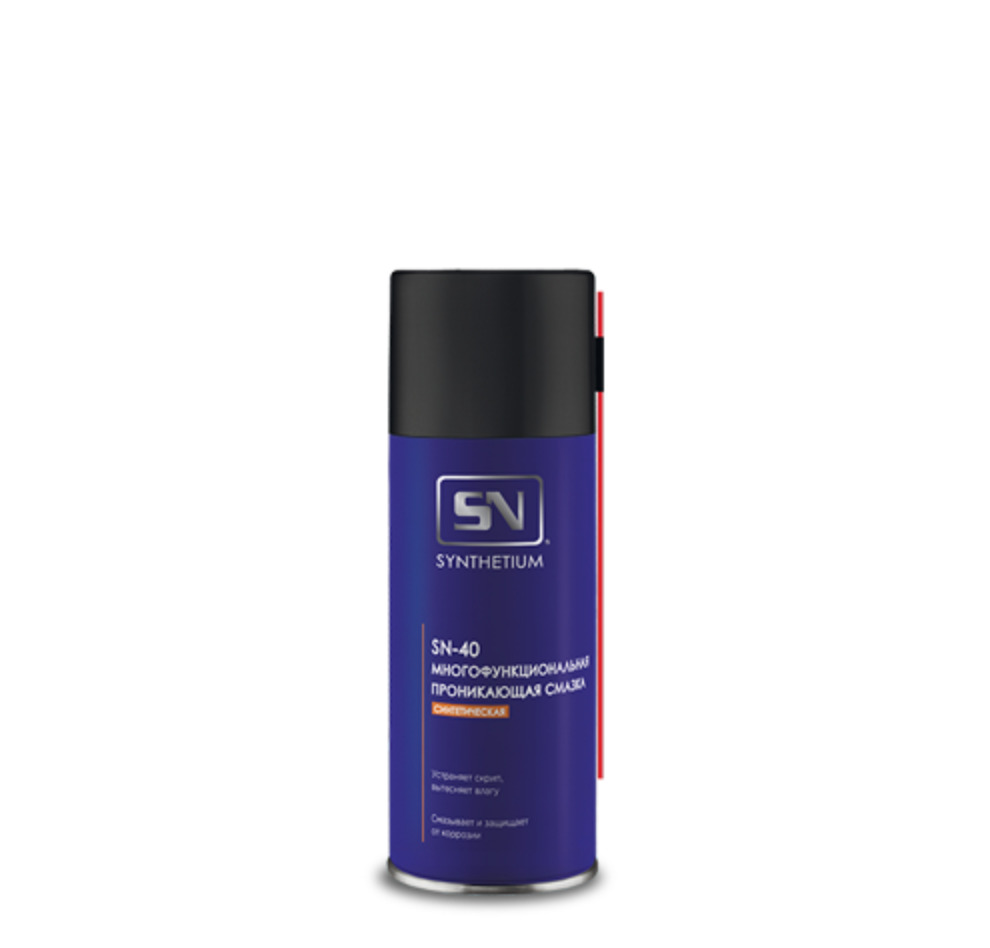 SN-40 – универсальное средство, обладающее широким спектром действия: очищает, смазывает, защищает, вытесняет влагу и устраняет скрип.Средство SN-40 предназначено для обработки петель дверей, любых резьбовых соединений и механизмов, крепежа, замков, электрического оборудования, трущихся металлических и пластиковых поверхностей и другого применения при уходе за автомобилем, а также в быту и промышленности.